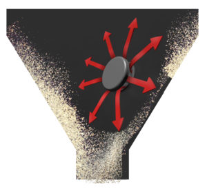 Material can form a stable arch over the outlet (bridging and arching), which can block material flow completely, or, it forms a stable open channel, but leaves stagnant material at the side (ratholing). According to Processing Magazine, “Ratholing can lead to erratic flow and reduce the bin’s live capacity by 90%.”